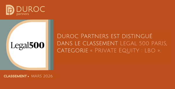 Duroc Partners distingué dans le classement LEGAL 500 Paris catégorie Private Equity : LBO