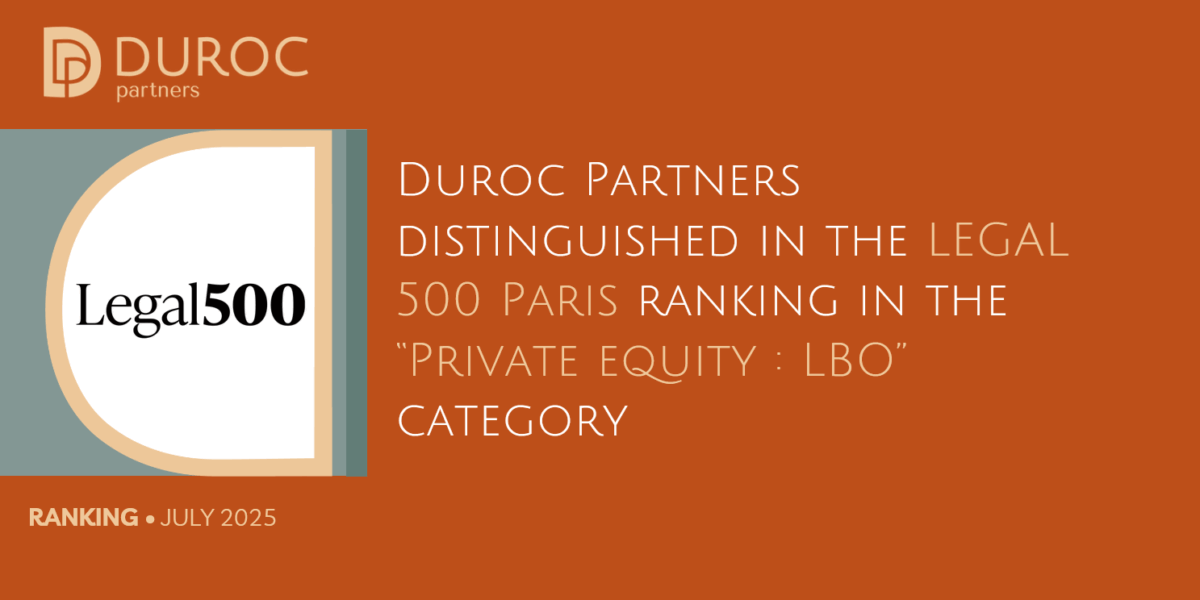 RANKING & AWARDS RANKINGS 🏅- CFNEWS Duroc Partners has climbed to 2nd place in the CFNEWS (Corporate Finance News) ranking in the “acting for management” category, just two years after its creation. We're delighted with this latest milestone, following our inclusion in Legal 500 last week! Congratulations to the whole team, and thank you to our customers and partners for