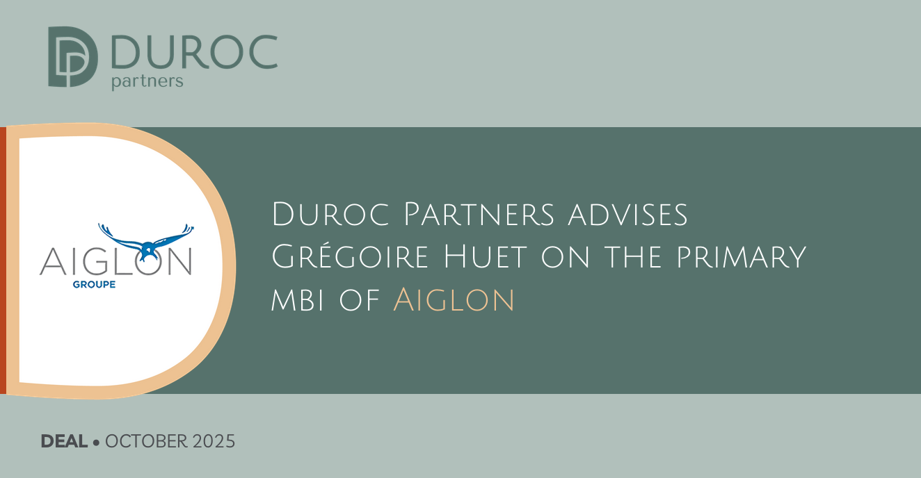 DEAL 🤝 | Duroc Partners is pleased to advise Grégoire Huet on the primary MBI of AIGLON PHARMA COSMETO, a century-old manufacturer of ingredients for the cosmetics and pharmaceutical industries.