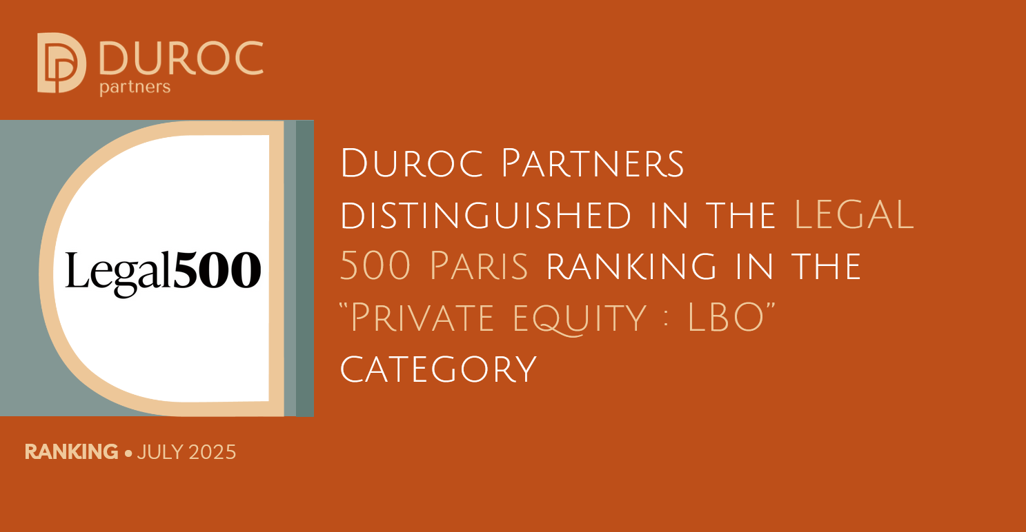 Duroc Partners distinguished in the legal 500 Paris Ranking in the “Private Equity: LBO” Category